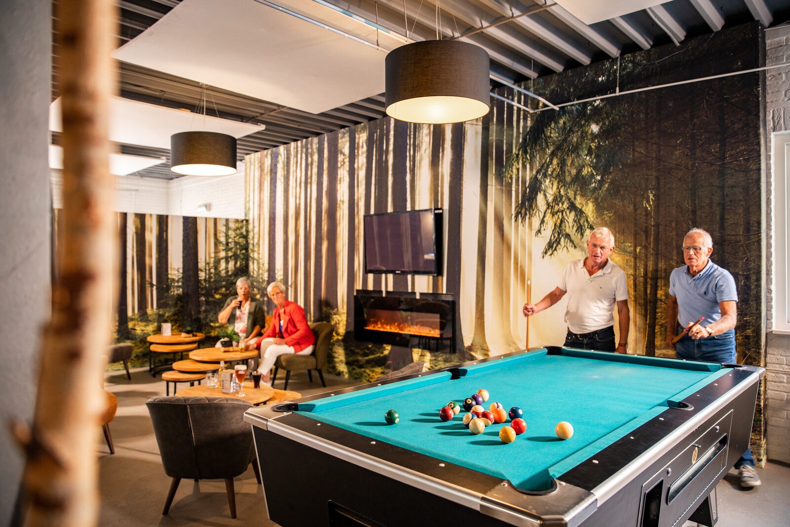 Vanaf verschillende tafels heb je vrij zicht op de speeltuin buiten. Zo kun jij ontspannen achteroverleunen terwijl de kinderen zich uitleven, binnen of buiten. Of je nu wel of niet op ons park verblijft: voel je welkom!